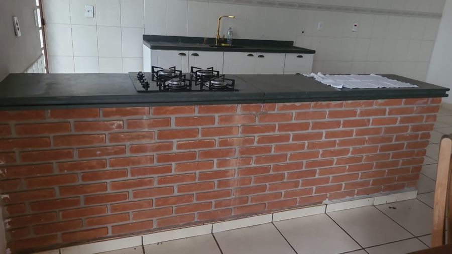 1 Ampla Cozinha estilo Americano com um lindo balção de tijolinho a vista, balcão de pedra, cook top embutido e dois