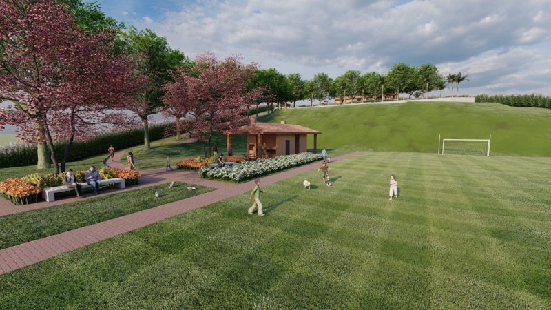 O empreendimento tem como diferencial 18 praças temáticas permitindo que os moradores tenham uma praça em sua rua.